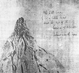 这个时候志摩才答应他到八十岁的那年一定亲去祝寿。谁知道志摩就在去的第二年遭难。老头子这时候听到这种霹雳似的恶信,一定不知怎样痛惜的吧。本来也难怪志摩对他老人家特别的敬爱,他对志摩的亲挚也是异乎平常,不用说别的,一年到头的信是不断的。只可惜那许多难以得着的信,都叫我在摩故后全部遗失了,现在想起来也还痛惜!因为自得恶耗后,我是一直在迷雾中过日子,一切身外之物连问都不问,不然今天我倒可以拿出不少的纪念品来,现在所存的,就是附印在这里泰戈尔为我们两人所作的一首小诗和那幅名贵的自画像而已。
