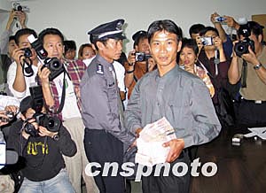 二十九岁的三亚市民陈贤壮因举报有功,今天获得公安部颁发奖金二十万元,及三亚市委、市政府奖金五万元。他在新闻发布会上表示能够为打击犯罪份子立功,感到很光荣。