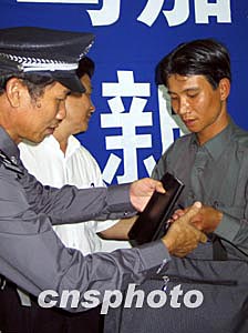 他介绍说自从公安部三月二日发布有关马加爵的通缉令后,他始终留意这个信息。三月十五日晚七时左右他骑摩托车经过三亚河西岸,前往第一市场买菜。发现路边有一男子在路边垃圾桶翻捡别人丢弃的食物和饮料,他觉得此人相貌与通缉令上的照片非常想像,他立刻与到处都粘贴的通缉令对照,认为比较确定。在与马犯对视的过程中,他还发现此人在装疯并且走路一瘸一拐。他立刻骑摩托前往三亚河西派出所报案。
