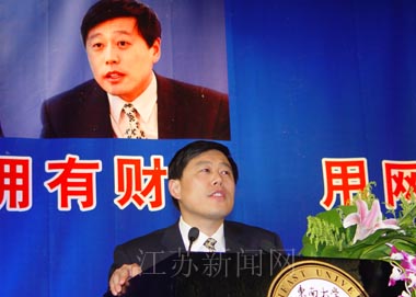 中新江苏网南京4月12日电(记者 王学峰)4月12日,慧聪国际总裁郭凡生,慧聪国际CTO、中国搜索第一人陈沛在南京东南大学作“让知识拥有财富,用网络成就未来”的演讲,受到在宁1000多名企业家、学者及大学生欢迎,江苏省发展与改革委员会主任钱志新到会并致辞。