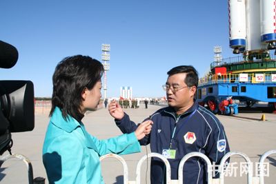 中国载人航天工程副总指挥、航天科技集团公司总经理张庆伟接受媒体采访。作者:杨建