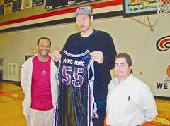 1983年出生的孙明明,来自哈尔滨,身高约235公分。两年前他被美籍篮球经纪人包辛诺( Charles Bonsignore)发现来美发展。