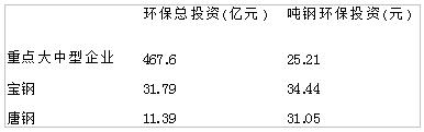 “十一五”我国钢铁重点统计企业及代表企业环保投资情况