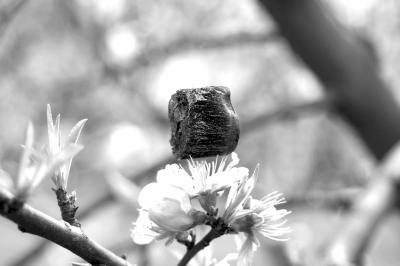 花芯上的8立方厘米的超轻气凝胶。汪晓勇摄