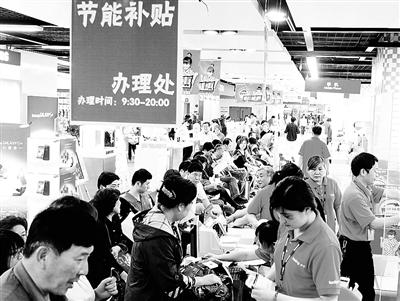5月23日,一些顾客在上海市的一家商场内办理“节能补贴”手续。5月底,为期一年的家电节能补贴政策即将落幕,上海众多消费者纷纷抢搭末班车,掀起了家电市场新一轮消费热潮。 新华社记者 陈 飞摄