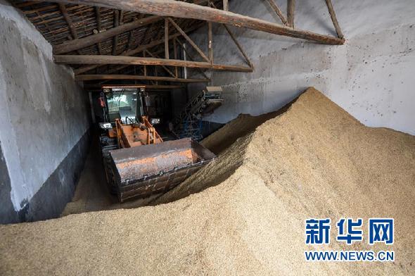 5月22日,在攸县大同桥镇大板米厂仓库,成堆的稻谷还摊置其中,除了几名工作人员留守值班,厂内已经没有生产的迹象。
