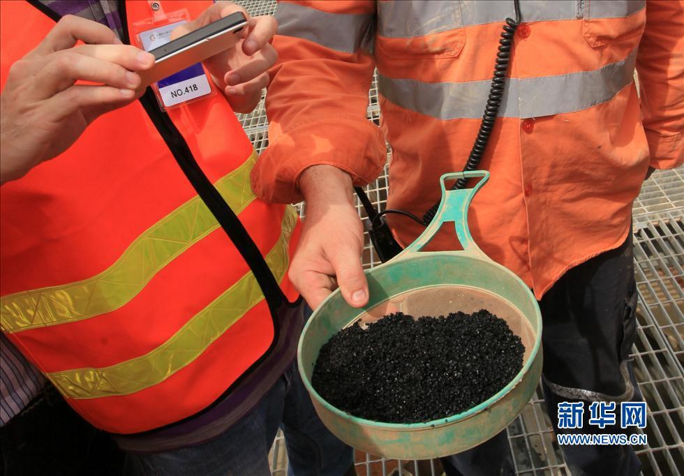 6月15日,在印度尼西亚北苏门答腊省的马塔贝金银矿区,工程师展示用于吸附金银成分的活性炭。新华社记者姜帆摄