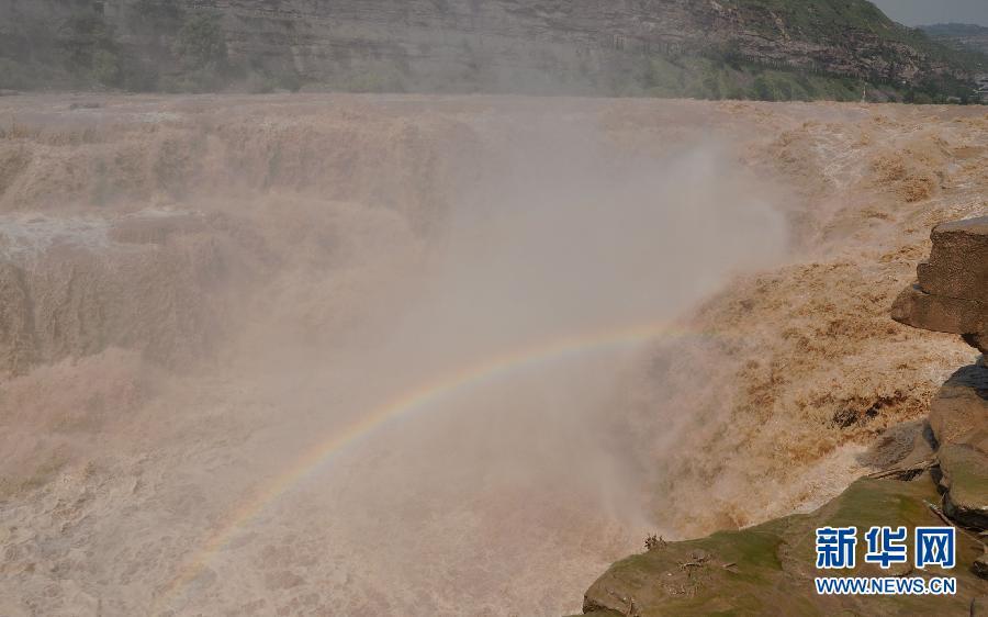 黄河壶口迎秋汛 壮美瀑布群绵延数百米(组图)