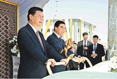 国家主席习近平4日同土库曼斯坦总统别尔德穆哈梅多夫共同出席中国石油天然气集团公司承建的土库曼斯坦“复兴”气田一期工程竣工投产仪式。