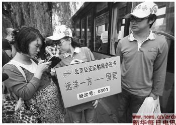 9日早上7时20分开始,在北京市朝阳区远洋一方小区门口,已经在网上参与线路定制并进行网上支付的乘客,手持收到定制信息的手机,陆续登上定制商务班车,前往国贸地区上班。