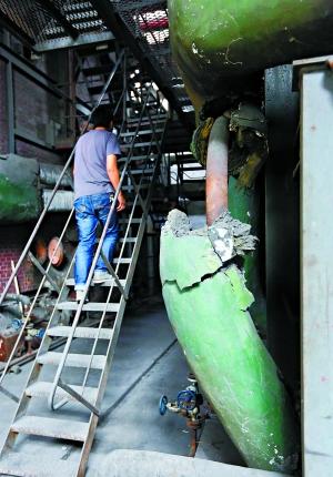 经过近20年的岁月侵蚀,老锅炉管道上包裹的一层厚厚的保温岩棉已经断裂脱落。