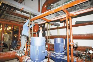 昨日上午,记者跟随负责该项目的石家庄国融安能分布能源技术有限公司相关负责人来到炼油厂工业余热项目的首站,这位负责人告诉记者,所谓炼油厂工业余热项目就是采用热泵技术,收集石家庄炼油厂的工业余热进行集中供热,它需要把低品位的热能转化为高品位的热能,再通过加压泵,输送到外网,最后进入各小区。首站就是整个供热项目的中枢,这里包括泵站和换热站。