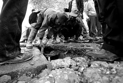 吕家营工程队负责人才先生介绍,该路边一直有人堆放建筑垃圾,工人在清理垃圾时,不小心将排污井盖一块儿清走,导致垃圾深入排污井内,堵塞了排污通道,造成污水溢出,漫过路面。昨天下午,才先生带领工人用水泵抽除路面积水,并将堵塞的管道疏通,使污水排放恢复正常。(记者聂辉)