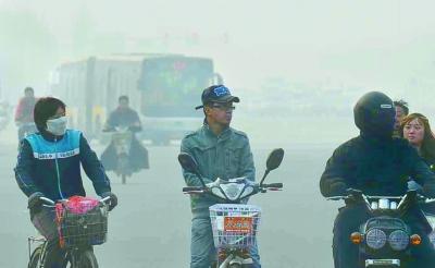 昨日本市出现雾霾天气,许多市民出行戴上了口罩摄影/本报记者 郁骁