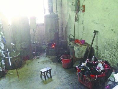 穿过阴暗的楼道,记者走进这座私房。制衣车间里的工人正在繁忙工作。二楼有一个锅炉房,两个锅炉火势正旺,房内堆着煤球和一筐废布料。