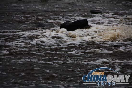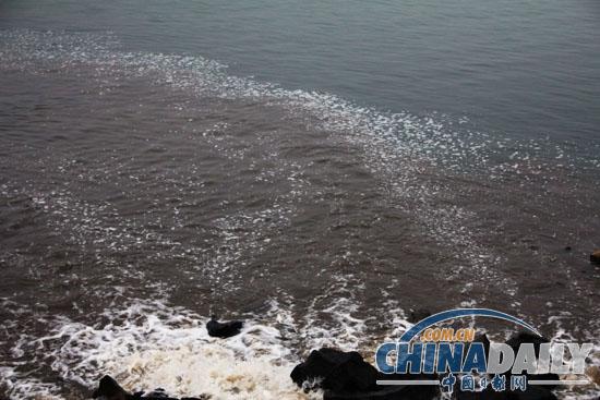 污水处理厂直排的污水进入长江后,与长江水出现了明显色差。