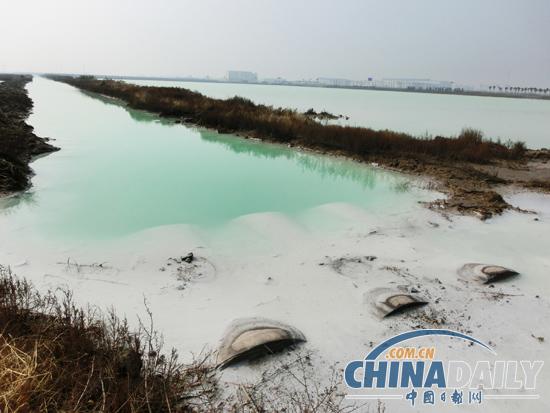 在S242省道南侧,连云港碱厂排放湿地的污水一样惊心悚目。