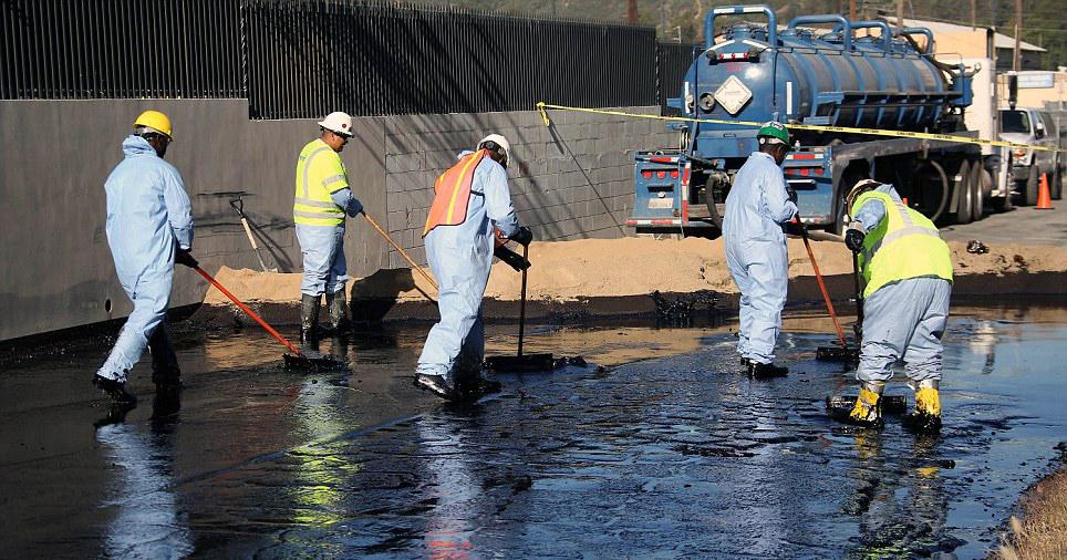 洛杉矶石油管道破裂上万加仑石油泄漏街头(图)(9)