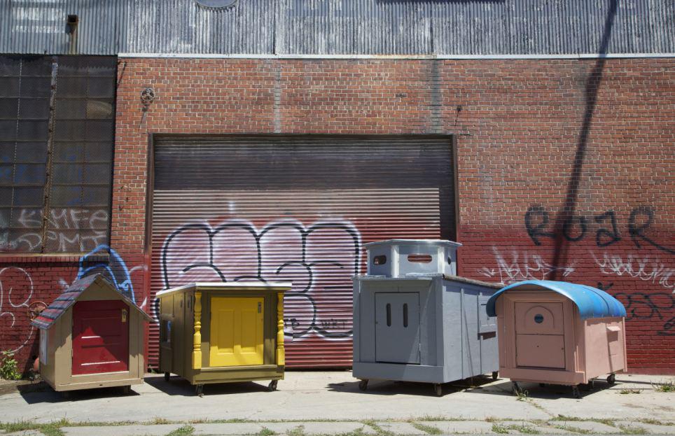 据英国《每日邮报》5月22日报道,美国加利福尼亚州奥克兰市43岁艺术家格雷格·科隆(Greg Kloehn)利用床架、洗衣机门等可回收垃圾,为流浪汉建造可移动的迷你房屋。