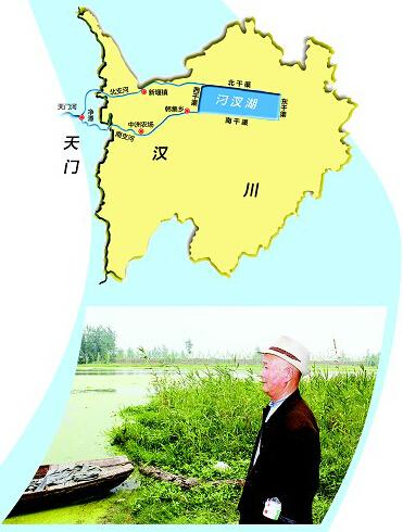 图为:屈光中一辈子以渔为生,污染让他断了生计。汈汊湖水域示意图(制图:万璇)