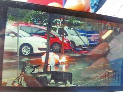 记者看到,路东侧地面上遗弃着一把橙白相间的雨伞,边上有一根高压线耷拉在电缆上,距地面约10厘米。在路边富凯大厦上班的李先生指着说,11点35分左右,女子就是在雨伞那里被断落的电线烧伤的,“女子被击倒在地后,脚部烧伤,当时大家害怕,没人敢近前。”他说,约几分钟后,女子挣扎着向前爬了一段距离,随即被路人扶上急救车。李先生说,其实事发前道路东侧的线缆就冒过火花,半个小时后高压线起火烧断,并耷拉到几十根缠在一起的电缆上,不时迸出火花。