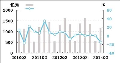 经初步季节调整,二季度钢铁行业固定资产投资总额为1158.3亿元,由上季度的同比增长0.1%转为本季度的同比下降15.7%。在化解产能过剩等政策持续推行和房地产市场疲弱的影响下,钢铁行业固定资产投资大幅下降。