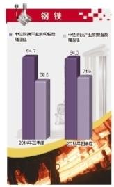 统计模型测算结果显示,2014年三季度中经钢铁产业景气指数预计为94.7,预警指数为68.5。2014年四季度中经钢铁产业景气指数预计为94.5,预警指数为71.6。这表明,钢铁行业景气仍可能继续低位徘徊。