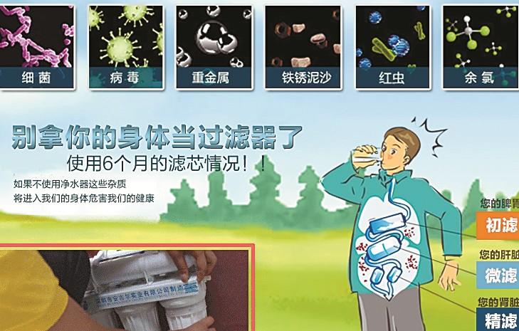 净水产品市场多年来杂乱无序,但广告宣传无不让人怦然心动。资料图片