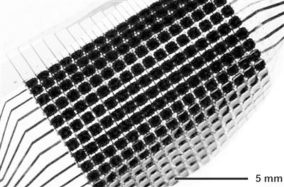虽然现在的原型设备还不到一平方英寸,但很容易扩大制造。设备表皮柔韧灵活,由多层超薄层构成,并结合半导体促动器、开关元件、无机反射器感光元件和能与背景颜色自动匹配的有机变色材料。他们研究的材料包括一种像素设备,能模拟章鱼皮肤内的每个关键要素,除了闪光细胞和中央视觉器官以外。