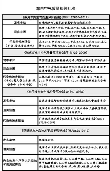环境保护部和国家质检总局于2012年3月1日颁布实施了《乘用车内空气质量评价指南》(以下简称《指南》),明确规定了车内空气中有关苯、甲醛等8种常见的车内挥发性有机物浓度限值。《指南》不仅适用于新车,使用中的车也可以参照。发布之初,业内人士希望借此标准能使车内污染受到车企和消费者的足够重视,从而解决我国新车车内环境污染问题。