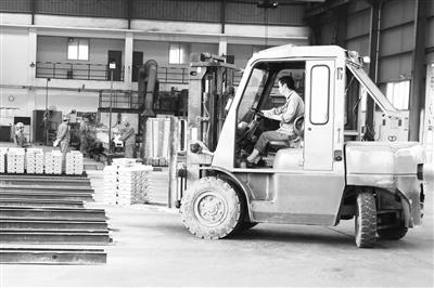 红河锌联公司在云南省个旧市鸡街镇泗水庄建成投运的瓦斯灰暨次氧化锌处理基地,目前已经满负荷运转日产锌达120吨。图为公司员工用装载机转运加工成型的优质锌锭。 蒋朝晖摄