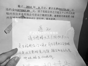 福州一居民楼接通知欠水费55万滞纳金687万 系公摊水费