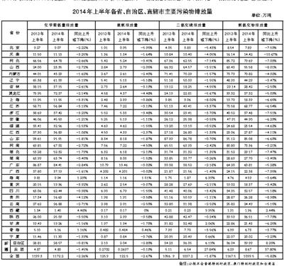 本报记者张秋蕾9月24日北京报道 环境保护部有关负责人今日向媒体通报了《2014年上半年各省自治区直辖市主要污染物排放量指标公报》。这位负责人说,根据有关规定,环境保护部组织对2014年上半年各省、自治区、直辖市主要污染物总量减排情况进行了核查核算。结果表明,2014年上半年,全国化学需氧量排放总量1172.2万吨,同比下降2.26%;氨氮排放总量122.5万吨,同比下降2.67%;二氧化硫排放总量1037.2万吨,同比下降1.87%;氮氧化物排放总量1099.5万吨,同比下降5.82%。其中,氮氧化物减排创造了“十二五”以来最好成绩,也为全面完成“十二五”减排目标任务打下了良好的基础。