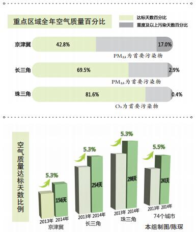 本报见习记者吕望舒北京报道 环境保护部有关负责人近日向媒体发布了2014年京津冀、长三角、珠三角区域和直辖市、省会城市及计划单列市共74个城市空气质量状况。
