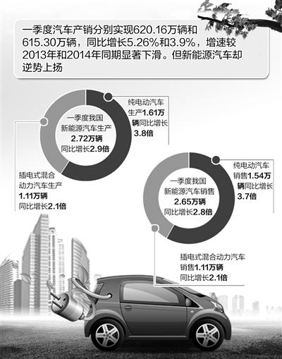 就整个行业的数据来看,一季度汽车产销分别实现620.16万辆和615.30万辆,同比增长5.26%和3.9%,增速较2013年和2014年同期显著下滑。