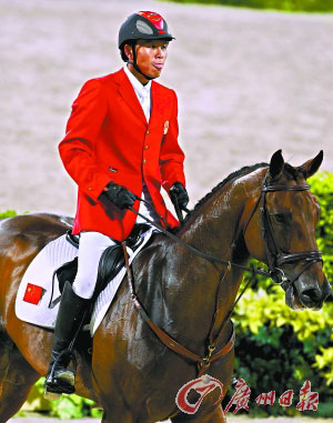 骑手张滨和他的战马“科尔蒂斯”。(图片来源:广州日报)