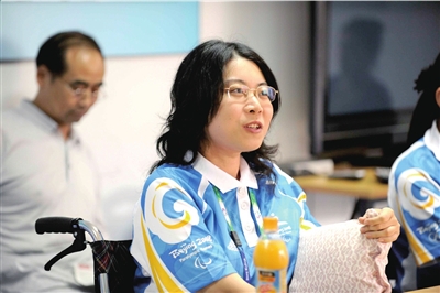 坐轮椅的博士志愿者、盲人按摩师志愿者……昨天,北京奥组委志愿者部组织中外媒体采访了残奥会的残疾人志愿者代表。