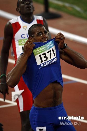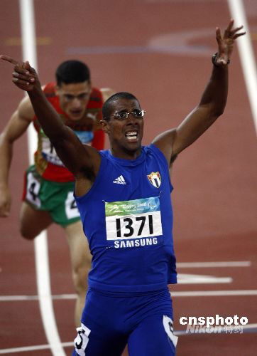9月10日,北京残奥会田径比赛男子400米T13级决赛中,古巴选手加拉诺以49秒12的成绩夺冠。中新社发 杜洋 摄