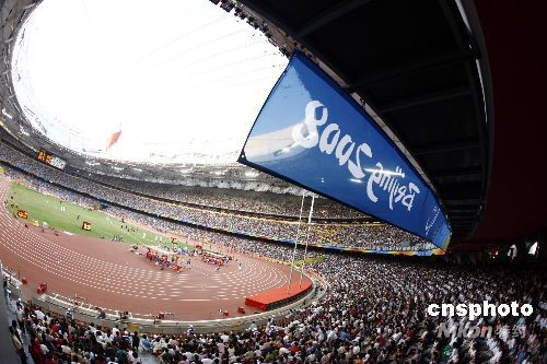 图:数万观众在“鸟巢”为各国选手加油