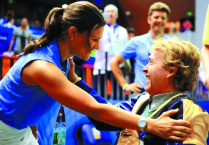 昨日,瑞典维多利亚公主再次来到北京射击馆,为雅各布松加油助威。比赛结束后,一直在看台上观战的瑞典公主走入场内,拥抱雅各布松以示祝贺。