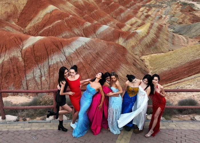 丝路环球旅游小姐参赛选手扮靓张掖七彩丹霞