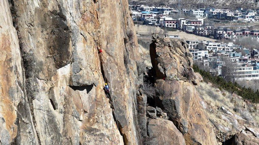 西藏攀岩自然岩壁公开赛 70名选手挑战极限
