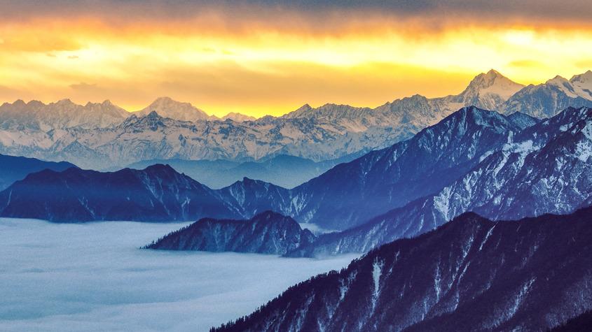 四川雅安:喇叭河风景区云海涌动 宛若流动水墨画