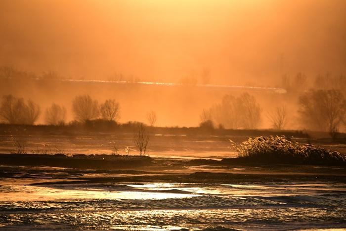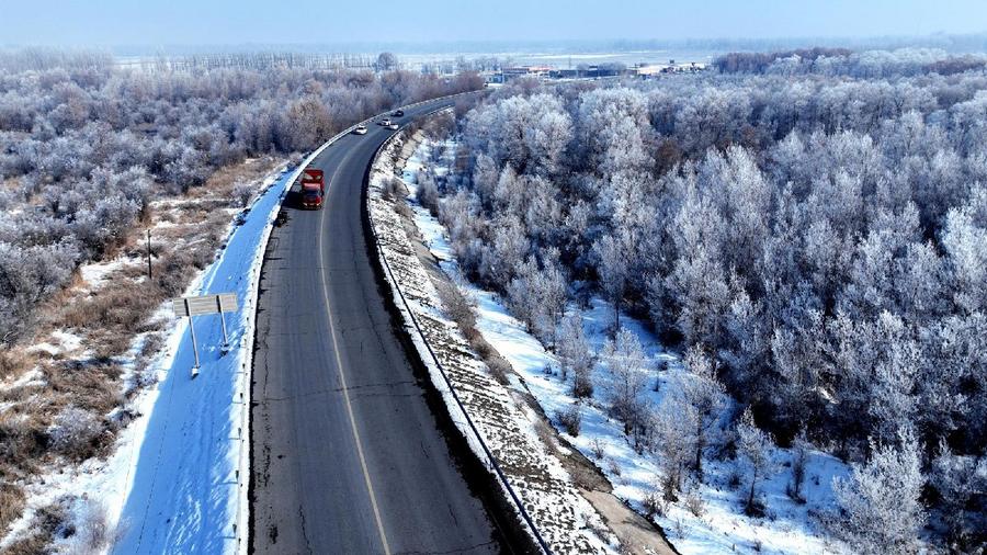新疆莎车县叶尔羌河畔出现雾凇美景
