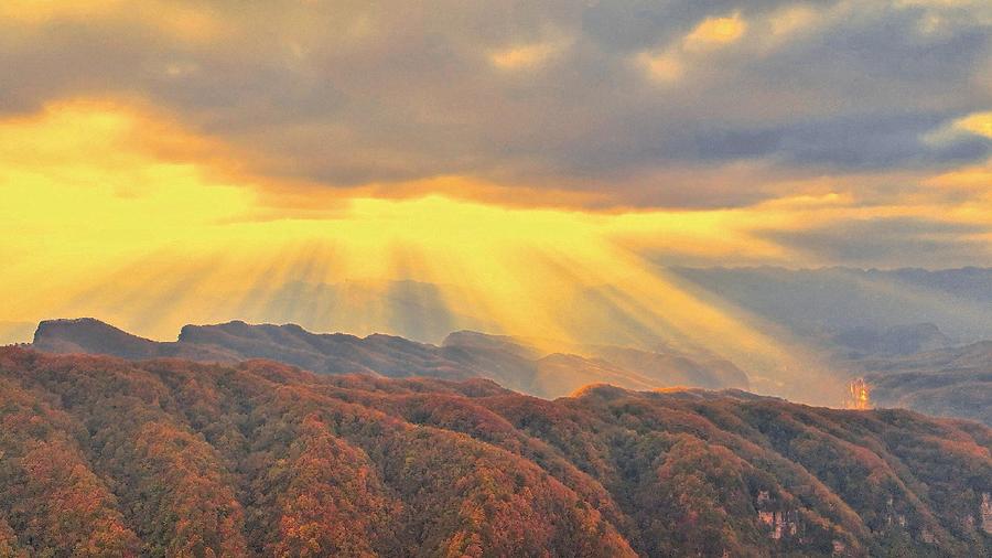 四川旺苍盐井河森林公园秋色浓 五彩斑斓美如画