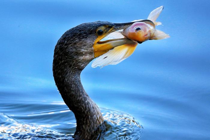 高原古城西宁:鸬鹚人工湖里觅食忙