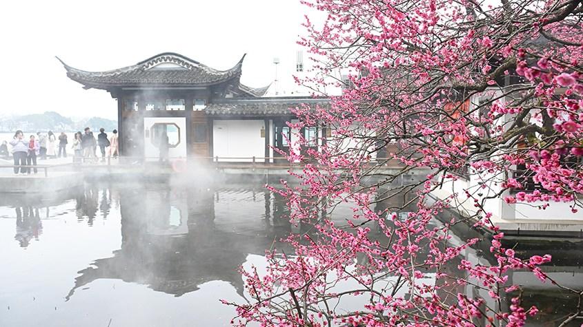 杭州西湖雾森“梅景”走红 兼具诗意和春意之景醉游人