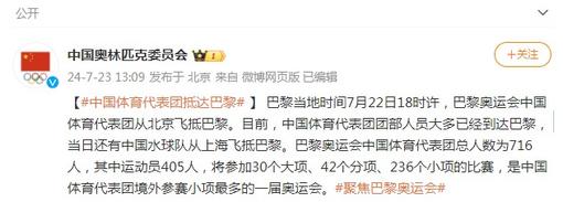 中国体育代表团抵达巴黎 405名运动员参加30个大项角逐