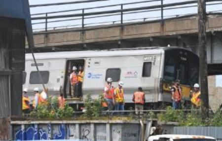 美国纽约一载百余人火车发生脱轨事故 致13人受伤