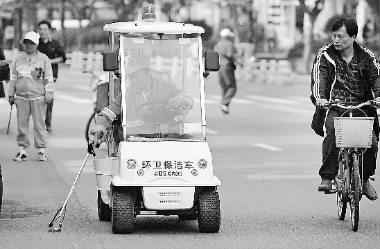 据介绍,这种高尔夫保洁车已经在丽水路、湖墅路、莫干山路、教工路以及小河路等路段试行,试行效果好的话,还会进一步推广。(记者 孙晶晶 林云龙 摄)